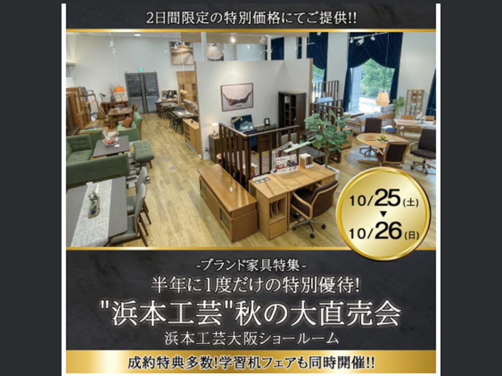 ご来場ご予約はこちらをクリック 半年に1度だけの特別優待!"浜本工芸"秋の大直売会 2日間限定の特別価格にてご提供!! 大阪で浜本工芸の家具…
