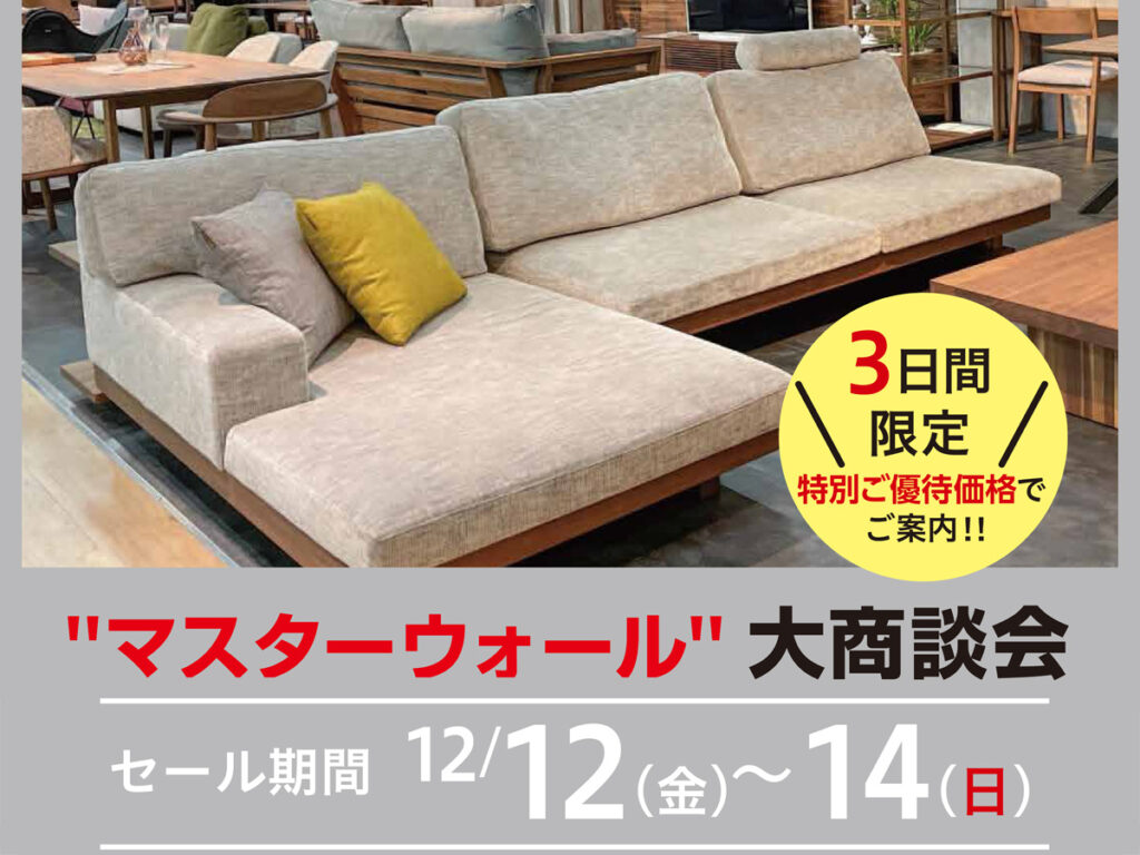 マスターウォールをはじめとするブランド家具を”3日間限定”の特別価格でご提供!!