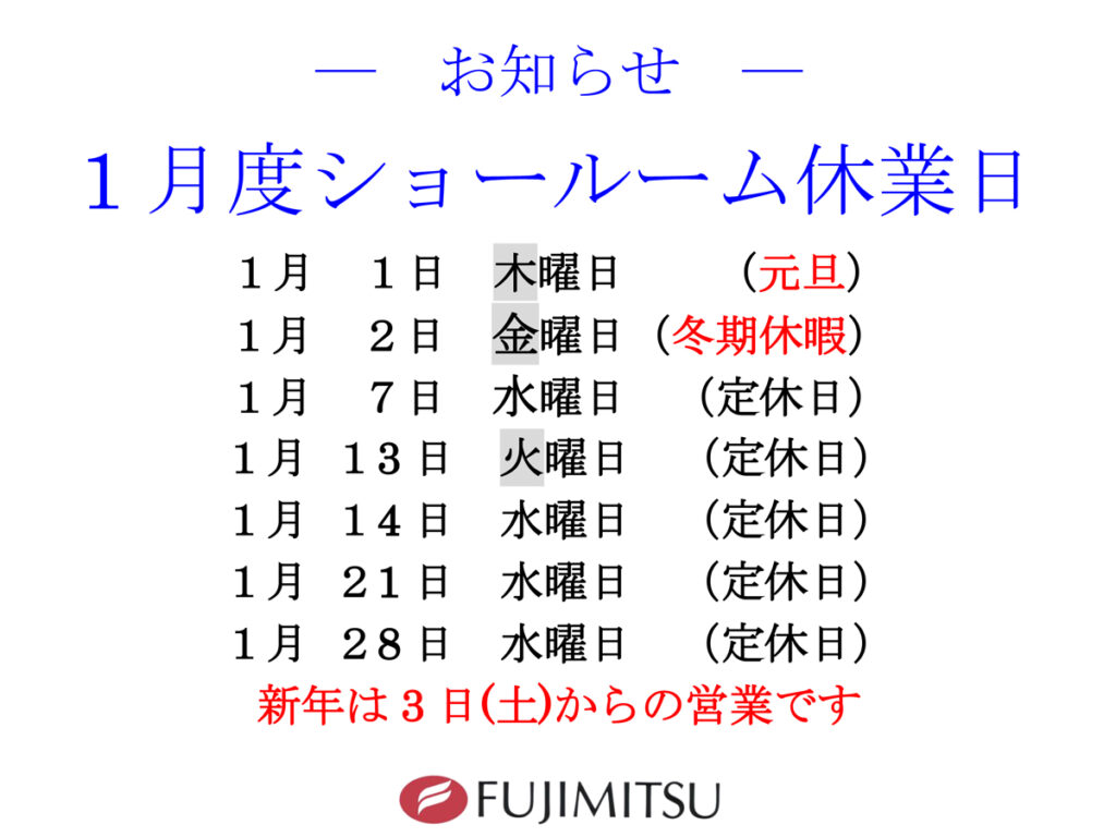 HOME > お知らせ > 1月度ショールーム休業日のお知らせ